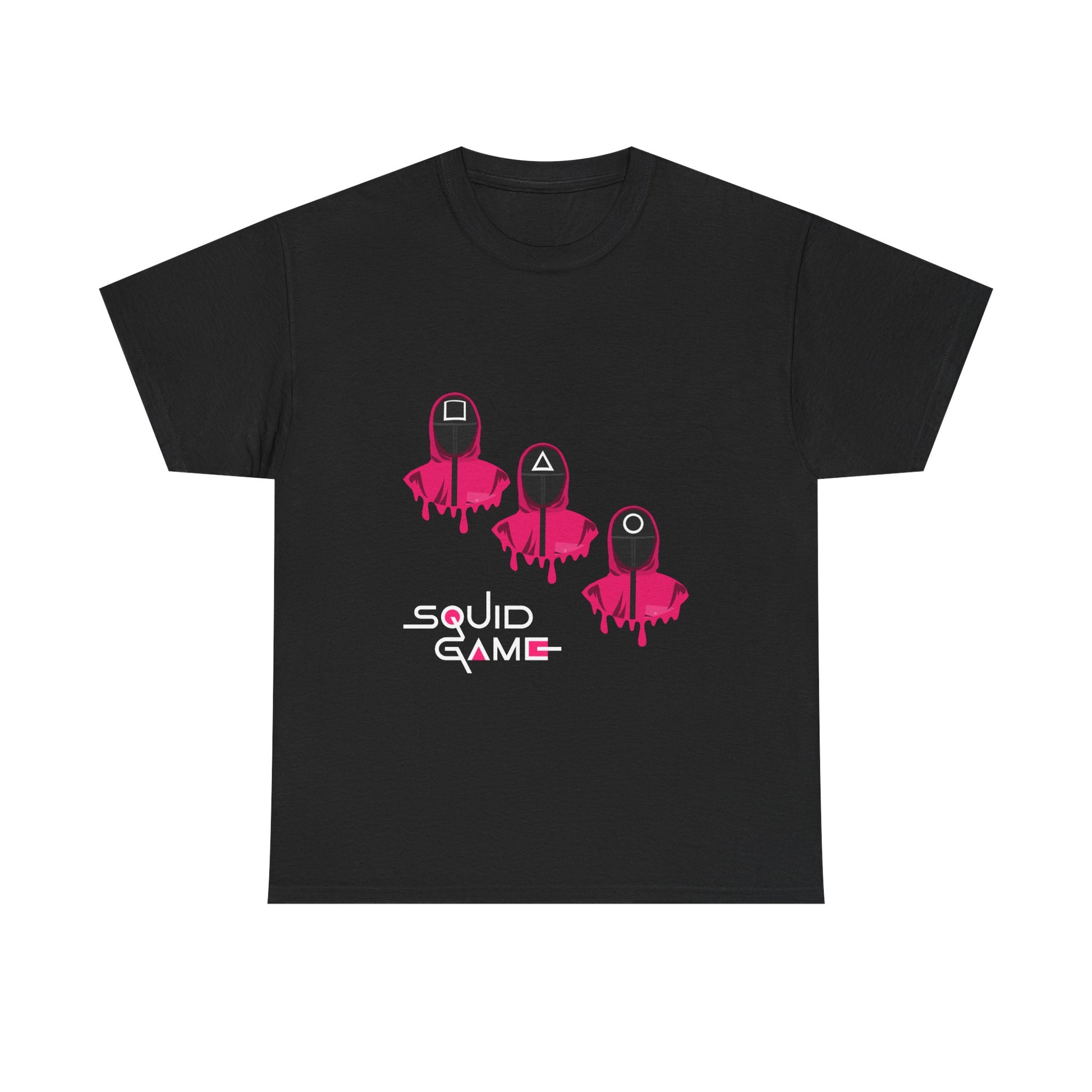 A trendy squid game-themed tee perfect for fans of the popular show. The classic fit and crew neckline make it versatile for any casual occasion. Ideal for adults who enjoy unique and trendy graphic tees. Relevant for cosplay events, and TV show watch parties.